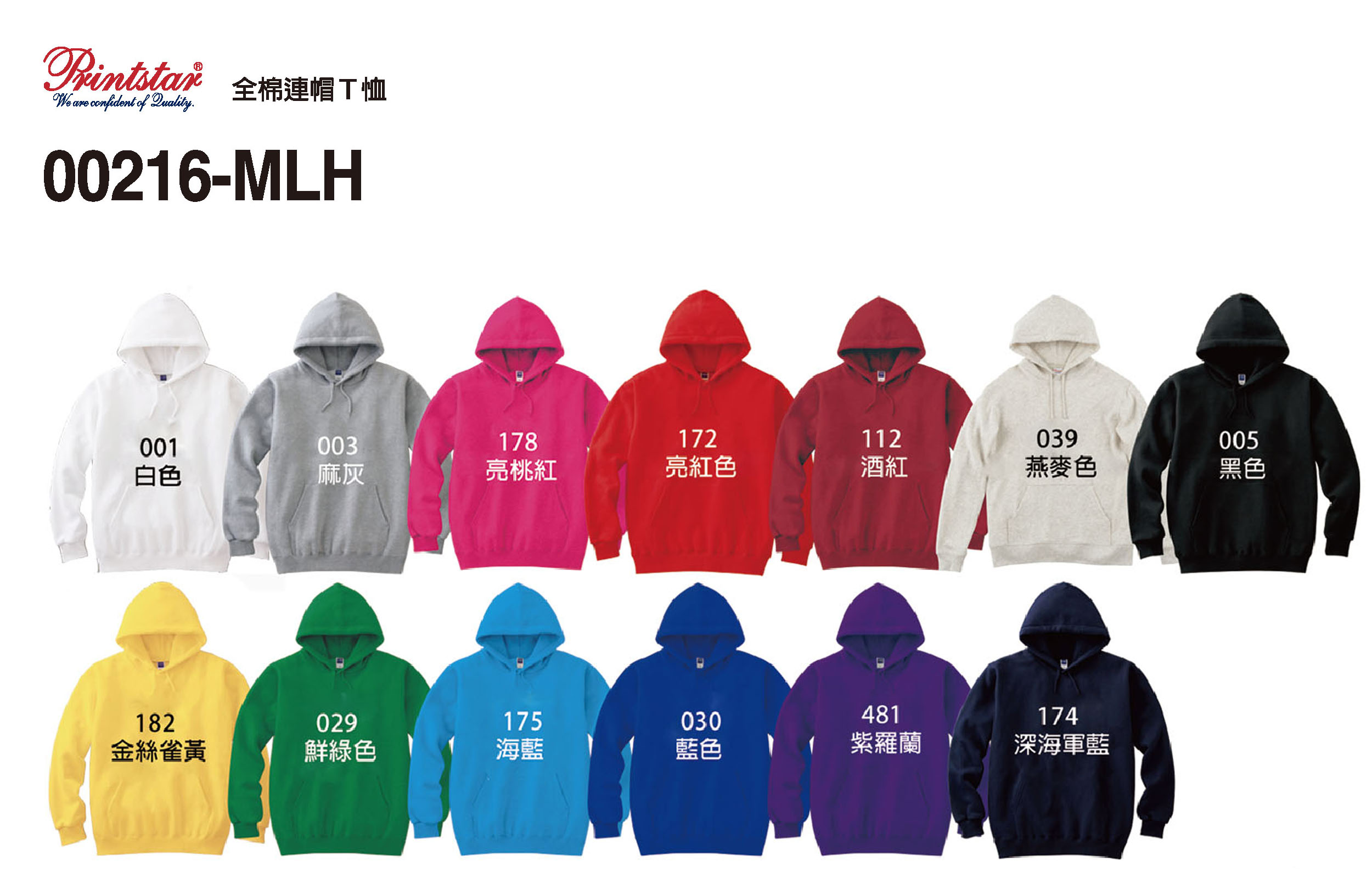 【純棉】Prinstar 00216-MLH 8.4 OZ 全棉厚磅長袖帽T